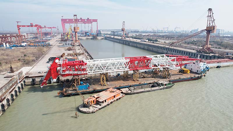 近日,子公司潤邦重機爲上海博臻航務工程有限公司設計建造的一台GENMA 800噸全回轉海洋風電安裝起重機(簡稱:海洋起重機)順利交付。